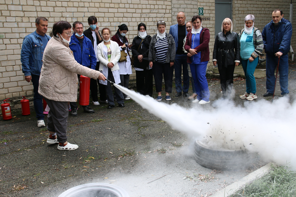 Новости \ Публикации \ 2025 годТренировка по эвакуации проживающих и персонала при возникновении пожара В соответствие с Планом основных мероприятий Ставропольского краевого геронтологического центра в области гражданской обороны, предупреждения и ликвидации чрезвычайных ситуаций и обеспечения пожарной безопасности, 11 сентября 2025 года в учреждении проведена тренировка по эвакуации проживающих и персонала при возникновении пожара. Учения проводились совместно с личным составом боевого расчета 8 ПСЧ «3 ПСО ФПС ГУ МЧС России по Ставропольскому краю», руководитель боевого расчета старший инструктор спасатель экстренного реагирования младший сержант Скалацкий Д.А. В ходе эвакуации по сценарию проживающей была оказана первая медицинская помощь в виде наложения шины на левую нижнюю конечность. Проведены практические занятия с сотрудниками учреждения по порядку применения и использования огнетушителя ОП-4. Проведенные тренировочные занятия показали, что персонал центра действует правильно и слаженно. Назад | Другие тематические разделы: |