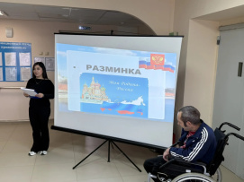 Новости \ Публикации \ 2025 год«В единстве народа - сила страны»В преддверии государственного праздника - Дня народного единства, маломобильные получатели социальных услуг Ставропольского краевого геронтологического центра, в комфортных для себя условиях, приняли участие в музыкально-патриотической викторине. День народного единства — праздник, в который мы отдаём дань истинным традициям патриотизма, согласия народа и веры в Отечество! Назад | Другие тематические разделы: |