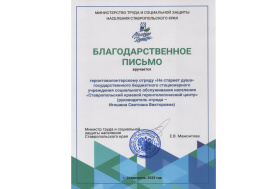 Государственное бюджетное стационарное учреждение социального обслуживания населения "Ставропольский краевой геронтологический центр" | ![]() ![]() |