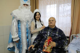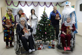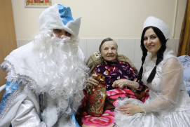Новости \ Публикации \ 2025 годПодарки от Дедушки Мороза и СнегурочкиВ преддверии Нового года и Рождества в Ставропольском краевом геронтологическом центре царила праздничная атмосфера. Традиционно, маломобильных получателей социальных услуг посетили герои русских сказок – Дед Мороз и Снегурочка. Их визит стал настоящим подарком для пожилых людей и инвалидов. Такая встреча стала настоящим подарком для всех присутствующих и помогла создать атмосферу настоящего семейного торжества. Ведь для тех, кто нуждается в особенной заботе и внимании, подобные мероприятия особенно важны и ценятся гораздо больше обычного подарка. Назад | Другие тематические разделы: |