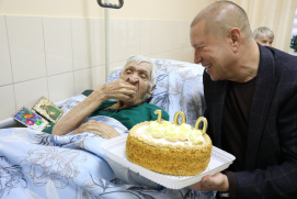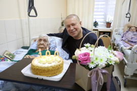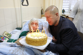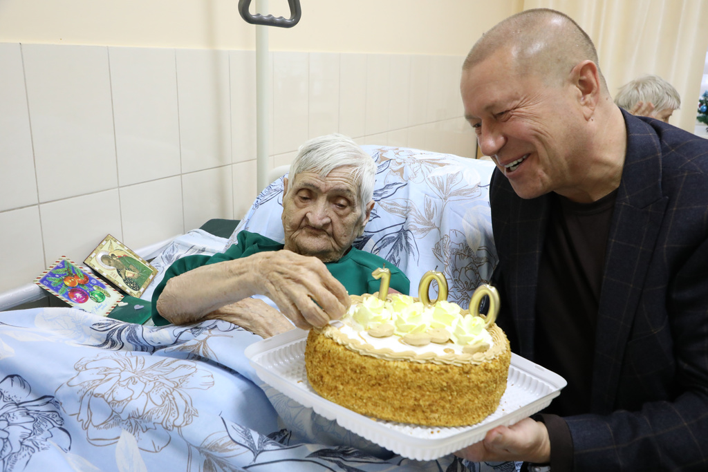 Новости \ Публикации \ 2026 год100-летний юбилей!Получатель социальных услуг Ставропольского краевого геронтологического центра Вишневская Лидия Михайловна отметила 100-летний день рождения! Покорив 100 - летнюю вершину жизни, именинница не теряет бодрость духа и юношеский задор, радуясь каждому новому дню. С этим знаменательным событием виновницу торжества сердечно поздравил руководитель учреждения Константин Эдуардович Больбат, вручив Лидии Михайловне цветы и подарки! Назад | Другие тематические разделы: |