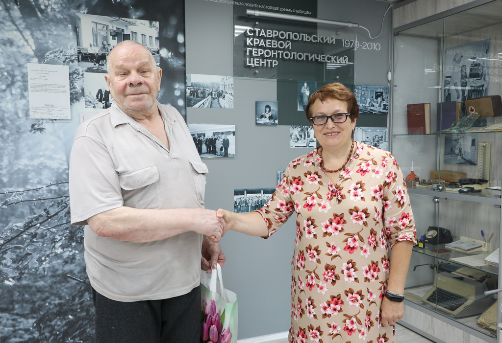 Новости \ Публикации \ 2025 годВстреча с представителями Ставропольской краевой общественной организации Всероссийского общества слепыхСтавропольский краевой геронтологический центр много лет плодотворно сотрудничает со Ставропольской краевой общественной организацией Всероссийского общества слепых. Сотрудники общества на постоянной основе навещают получателей социальных услуг, а инвалиды по зрению регулярно участвуют в различных мероприятиях, организованных обществом слепых. В конце мероприятия представители общества слепых вручили присутствующим памятные подарки, поблагодарив инвалидов по зрению за активную жизненную позицию, за полноценное и достойное участие людей с ограниченными возможностями здоровья в жизни общества и страны.Назад | Другие тематические разделы: |