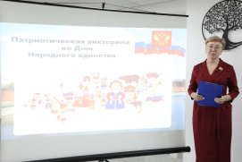 Новости \ Публикации \ 2025 год«В единстве народа - сила страны»В преддверии государственного праздника - Дня народного единства, маломобильные получатели социальных услуг Ставропольского краевого геронтологического центра, в комфортных для себя условиях, приняли участие в музыкально-патриотической викторине. День народного единства — праздник, в который мы отдаём дань истинным традициям патриотизма, согласия народа и веры в Отечество! Назад | Другие тематические разделы: |