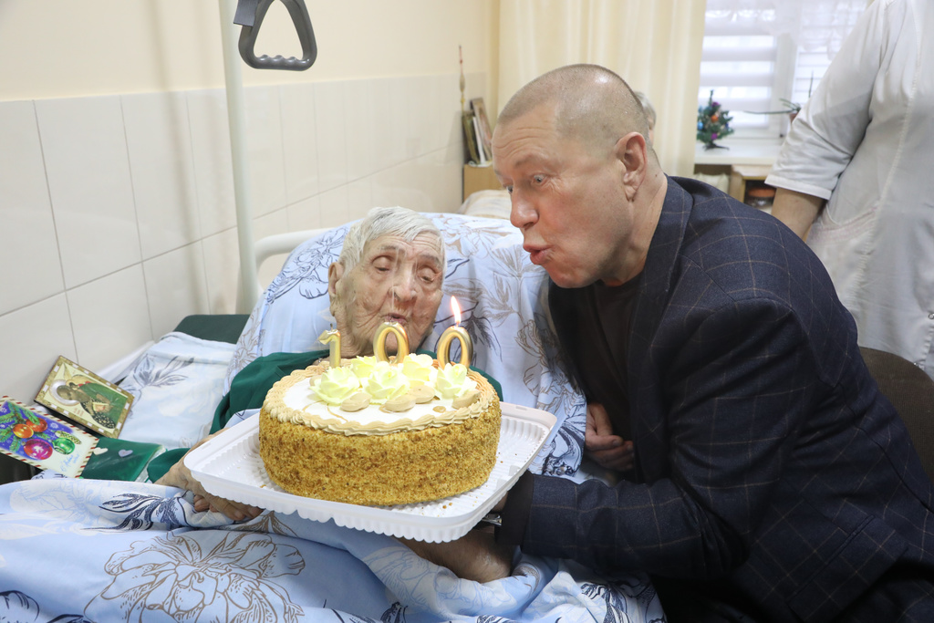 Новости \ Публикации \ 2026 год100-летний юбилей!Получатель социальных услуг Ставропольского краевого геронтологического центра Вишневская Лидия Михайловна отметила 100-летний день рождения! Покорив 100 - летнюю вершину жизни, именинница не теряет бодрость духа и юношеский задор, радуясь каждому новому дню. С этим знаменательным событием виновницу торжества сердечно поздравил руководитель учреждения Константин Эдуардович Больбат, вручив Лидии Михайловне цветы и подарки! Назад | Другие тематические разделы: |