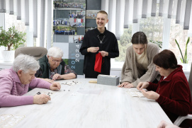 Новости \ Публикации \ 2026 годВолонтерство: мост между поколениямиУ получателей социальных услуг Ставропольского краевого геронтологического центра много хороших, добрых друзей, проверенных временем, и среди них, прошедшие в «Школе волонтеров» курс теоретической подготовки на базе краевого геронтологического центра, студенты- волонтеры Ставропольского государственного медицинского университета, направления «Социальная работа». Волонтеры провели групповое мероприятие на тему: «Нейрогимнастика: простые упражнения для стимуляции работы головного мозга», подробно рассказали пожилым людям и инвалидам об эффективности нейрогимнастики - комплексе физических упражнений, стимулирующих естественную активацию механизмов работы головного мозга и в игровой форме организовали занятие как для старшего поколения, так и для молодых людей с инвалидностью. Непосредственное, живое общение людей разных поколений не только радует всех, но и является частью реабилитационного процесса. Ребята с удовольствием посещают своих подопечных бабушек и дедушек, молодых инвалидов. Добровольцы, предлагая посильную помощь, дарят другим тепло своих сердец.Назад | Другие тематические разделы: |
